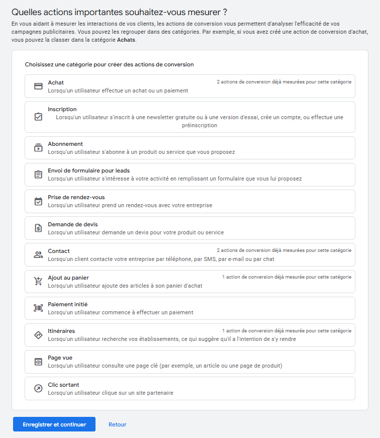 L’essentiel est de bien définir ce qui compte le plus pour votre activité, car c’est sur ces événements que repose l’optimisation de vos campagnes.